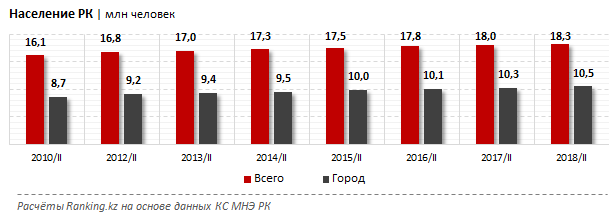 Ресми деректерге сәйкес, бір жыл ішінде түрлі мемлекеттік бағдарламалар бойынша қолжетімді баспана кезегінде тұрғандар саны 2,5 миллионнан 2,8 миллионға дейін өсті (2016 жылдан 2017 жылға дейін). Орта мерзімді перспективада (2-3 жыл) бұл аудитория тез өсетіні анық. Оның себебі – жоғары демографиялық өсу және белсенді урбанизация. 2017 жылдың екінші тоқсанынан 2018 жылдың екінші тоқсанына дейін жалпы Қазақстан халқының саны 238 мың адамға өсті. Қала тұрғындары 190 мыңға көбейді.