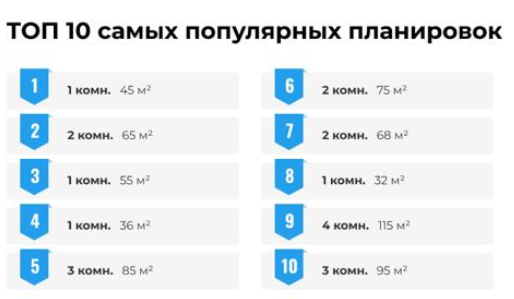 Второе место заняли двухкомнатные квартиры 65 м², востребованные среди молодых семей. Третья позиция досталась однокомнатным квартирам 55 м², сочетающим компактность и комфорт.