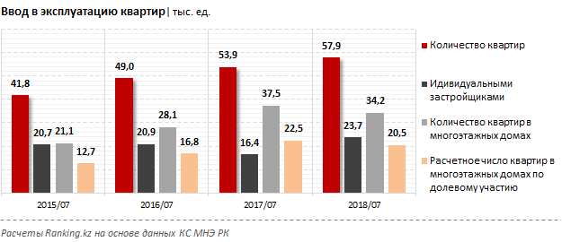За январь-июнь 2018 года сдано в эксплуатацию 34 тысячи квартир в многоэтажках, следовательно, 20,5 тысячи квартир — за счет дольщиков.